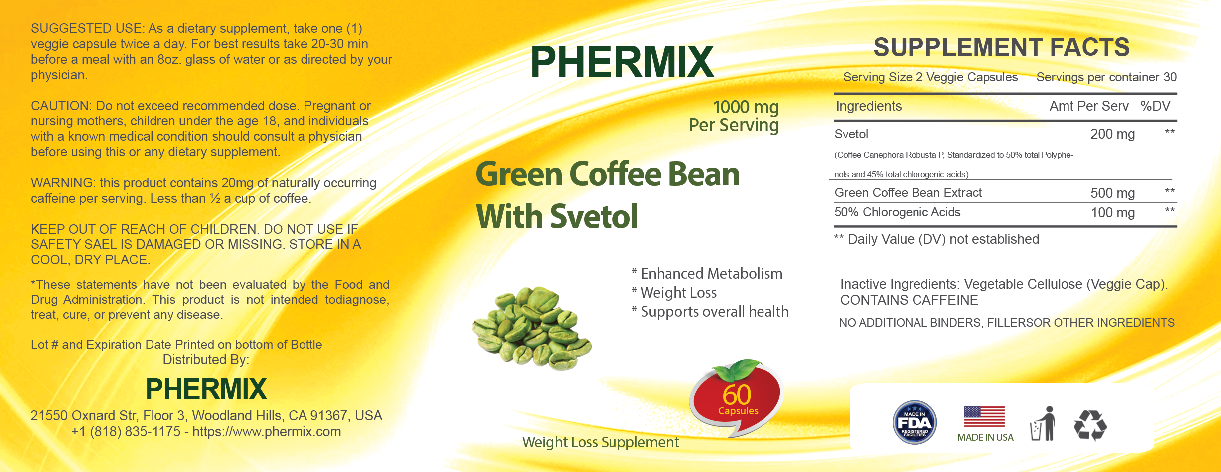 Green Coffee Bean with Svetol provides weight loss properties and aids to benefit those with blood issues. Svetol provides a higher number of chlorogenic acids, its weight loss properties include appetite control and metabolic enhancement.